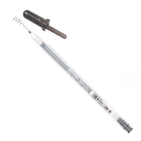 Add a little sparkle to your papercrafts, doodles and line art with this Gelly Roll metallic pen. It uses an archival-quality gel ink that glides smoothly on paper and adds a reflective sheen to your projects. The gel is also waterproof and resists smearing, fading and feathering. You can use this pen on dark and light glossy or matte surfaces.