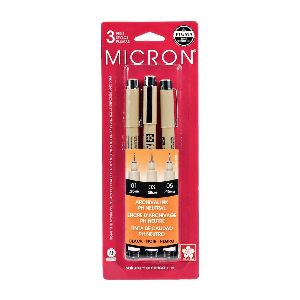 When accuracy, detail and preservation count, these pens are the most reliable choice. Artists, crafters, hobbyists, draftsmen, engineers and even scientists consider Pigma Micron a necessary tool for any handwritten or hand-drawn project. Scrapbook enthusiasts and crafters love its fine detailing and preservation qualities, and artists and illustrators rely on the Micron pen to create precision lines. Archival quality Pigma ink is chemically stable, waterproof and fade resistant, and it won’t smear, feather or bleed-through most papers. The ultra-fine porous-point tip will leave a mark that will last a lifetime.