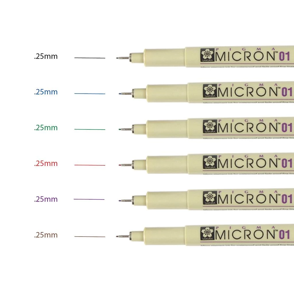 When accuracy, detail and preservation count, these pens are the most reliable choice. Artists, crafters, hobbyists, draftsmen, engineers and even scientists consider Pigma Micron a necessary tool for any handwritten or hand-drawn project. Scrapbook enthusiasts and crafters love its fine detailing and preservation qualities, and artists and illustrators rely on the Micron pen to create precision lines. Archival quality Pigma ink is chemically stable, waterproof and fade resistant, and it won’t smear, feather or bleed-through most papers. The ultra-fine porous-point tip will leave a mark that will last a lifetime. Set colors include Black, Red, Blue, Green, Brown and Purple.