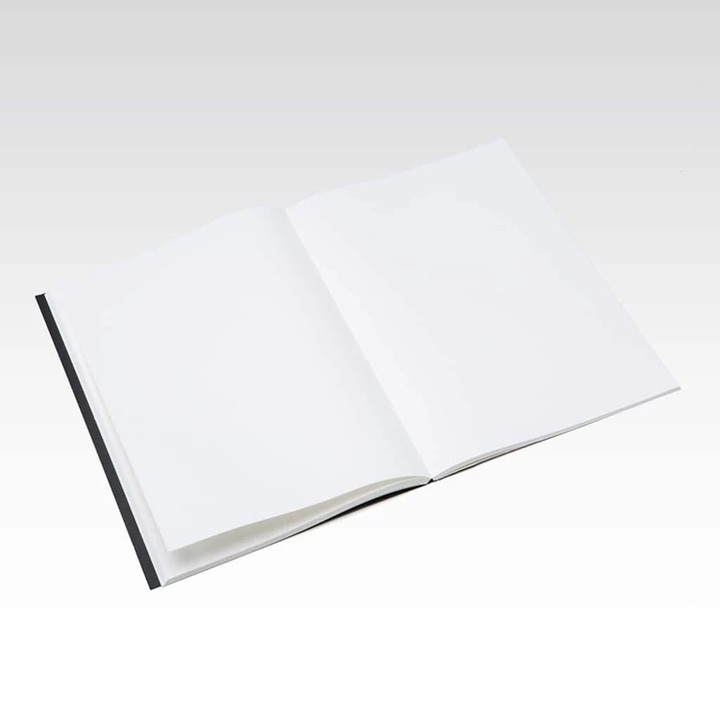 - Solid black cover, off-white paper