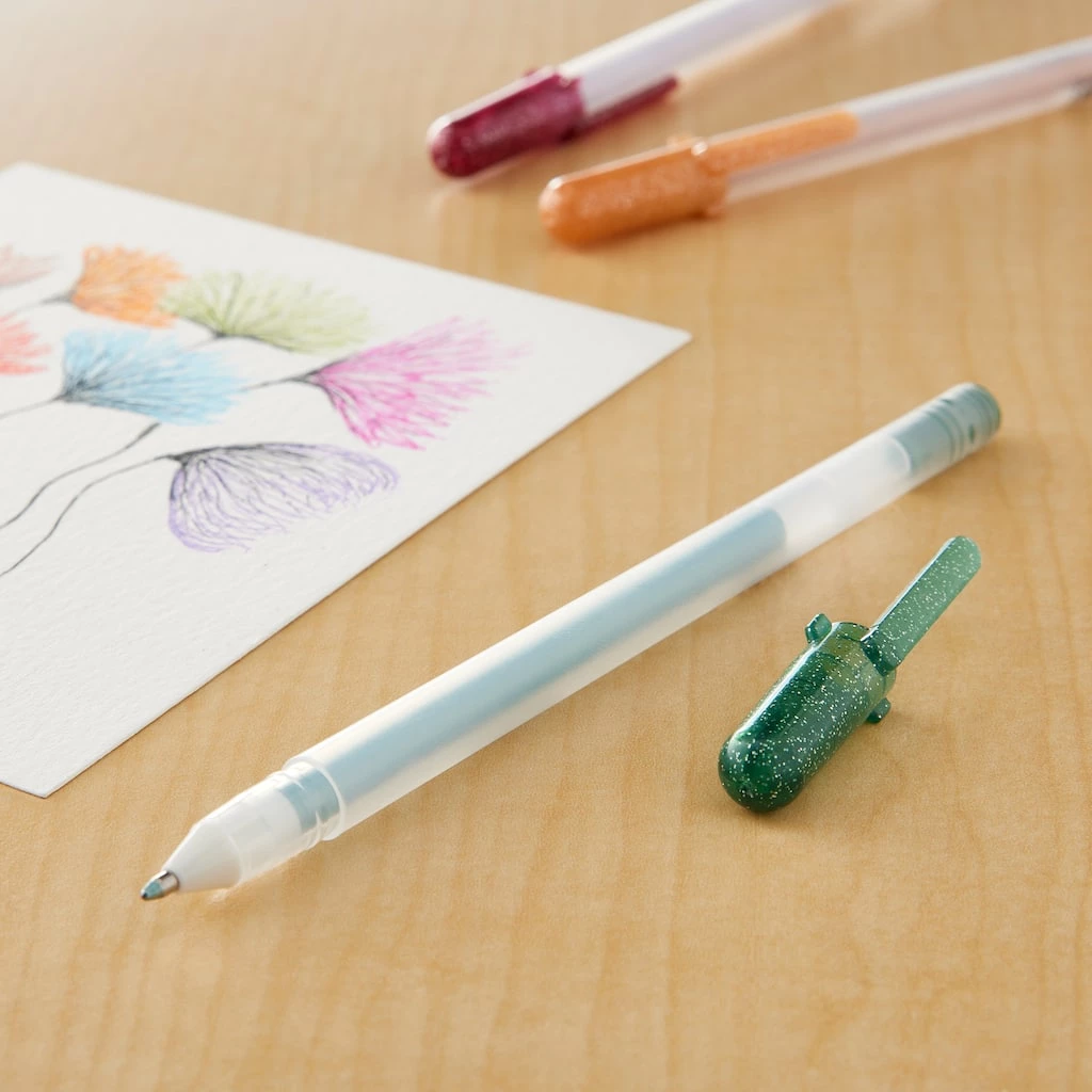 Add a little sparkle to your papercrafts, doodles and line art with this Gelly Roll metallic pen. It uses an archival-quality gel ink that glides smoothly on paper and adds a reflective sheen to your projects. The gel is also waterproof and resists smearing, fading and feathering. You can use this pen on dark and light glossy or matte surfaces.