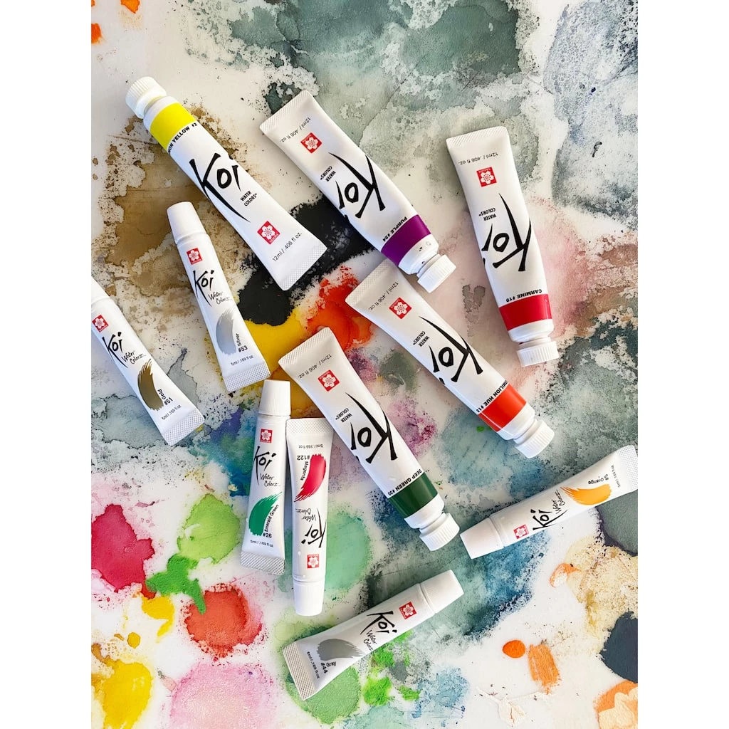 Students, hobbyists, and fine artists enjoy the smooth, subtle gradations of Koi® Water Colors. These student-grade tube watercolors perform well when applied to wet or dry paper, allow for versatility in correction and layering, and give the artist the ability to create washes with soft edges and dynamic color possibilities. Koi’s smooth and vibrantly pigmented colors instantly respond to water, are quick-drying, and contain a special binding agent for even brush suspension that allows the painter to combine an array of colors to match their subject matter, spread color easily and evenly across the paper, create spontaneous washes with soft edges, layer, merge and adjust colors in whatever painting techniques.