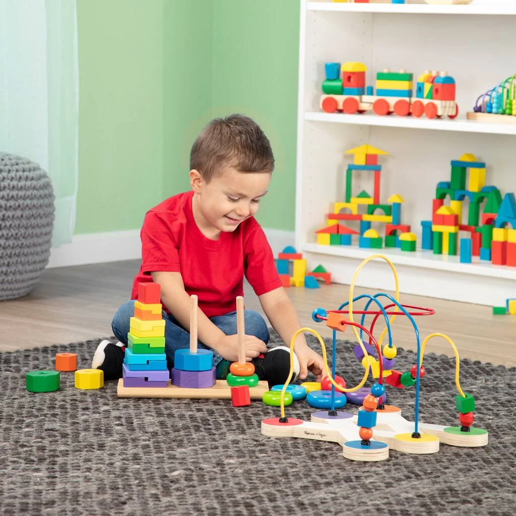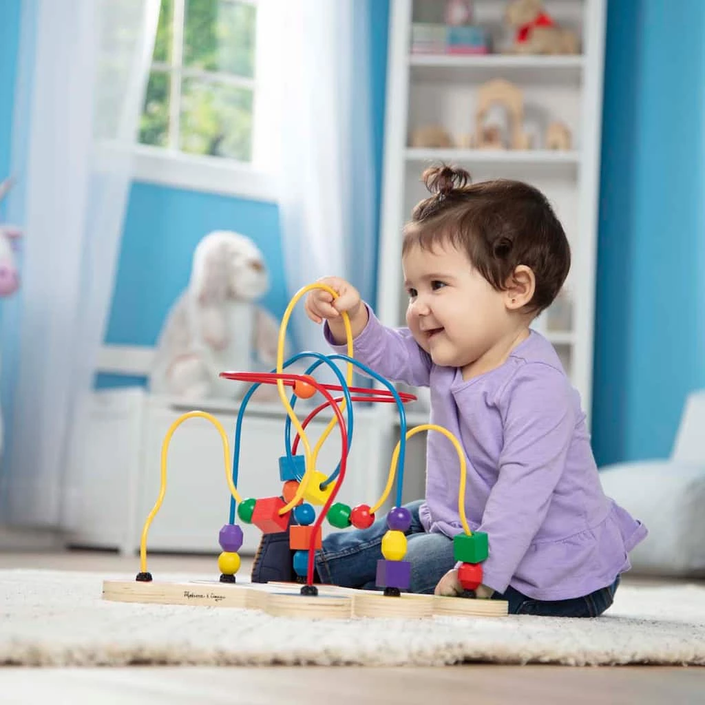 Multi-shaped and brightly colored beads swoop and slide along roller-coaster wires to encourage color and shape recognition and fine motor development. With a sturdy wooden base, this eye-catching activity will keep a little one busy for a long while!