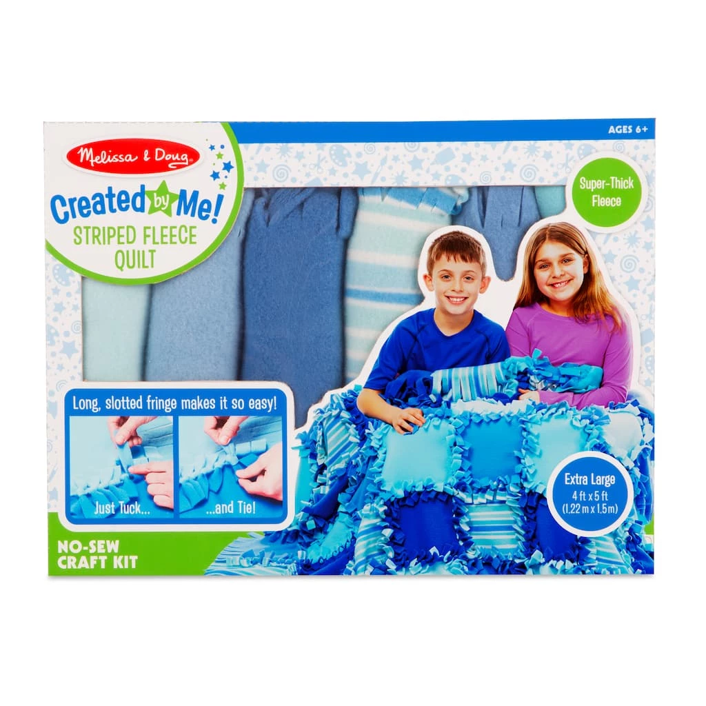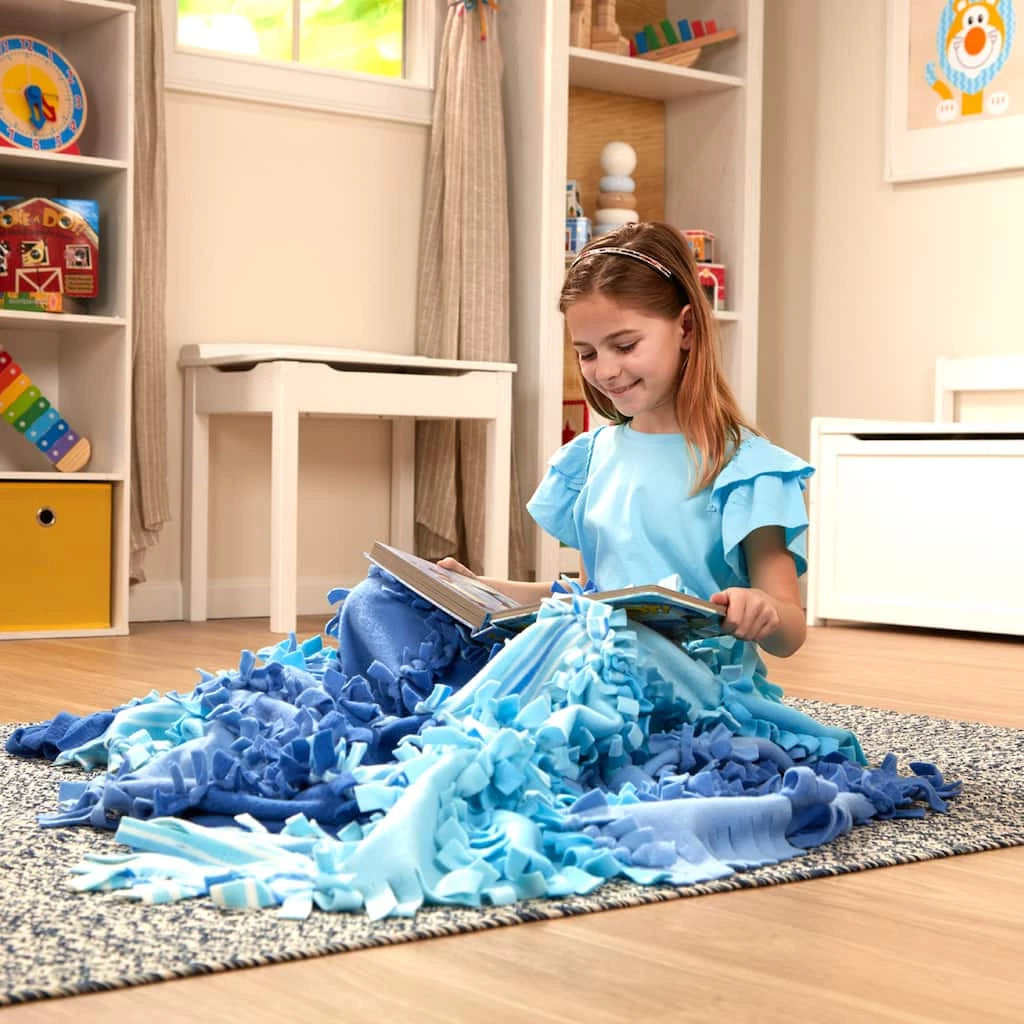 Want to make a super-cozy quilt in no time? Just knot it! We’ve made it fun and easy to make an extra-large, colorful fleece blanket. Just tuck the extra-wide and extra-long fringe into slits and tie single knots to piece together a uniquely you quilt! The fabric pieces are super thick, soft, and fuzzy on both sides for extra snuggling. The 48 12-inch by 12-inch pieces include fringe that’s nearly two inches long, making knotting fast and simple. The finished quilt is approximately four feet by five feet-or piece together fewer pieces to make scarves or smaller projects!