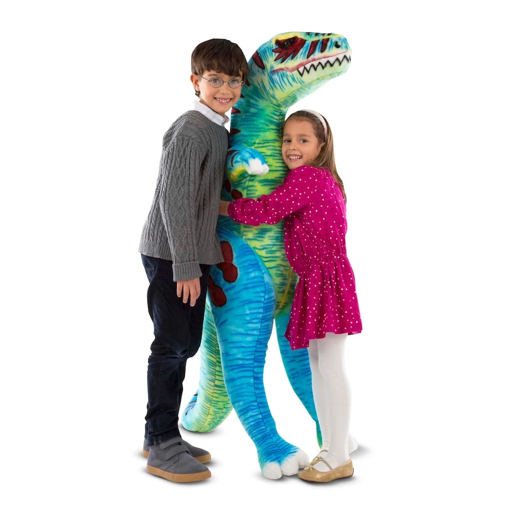 The giant T-Rex ruled the prehistoric world, and it will rule any room! This dynamic dinosaur makes a huge impression; the gigantic, multi-colored plush T-Rex stands an imposing 55 inches (more than four feet!) tall and is sure to be the centerpiece of any room, inspiring endless creativite and iamginative play. Itβs soft to the touch with a sturdy wireframe construction, long tail, and wide feet to help it to stand tall, making it perfect as a decorative piece for any room, as well as a catalyst for imaginary adventures!