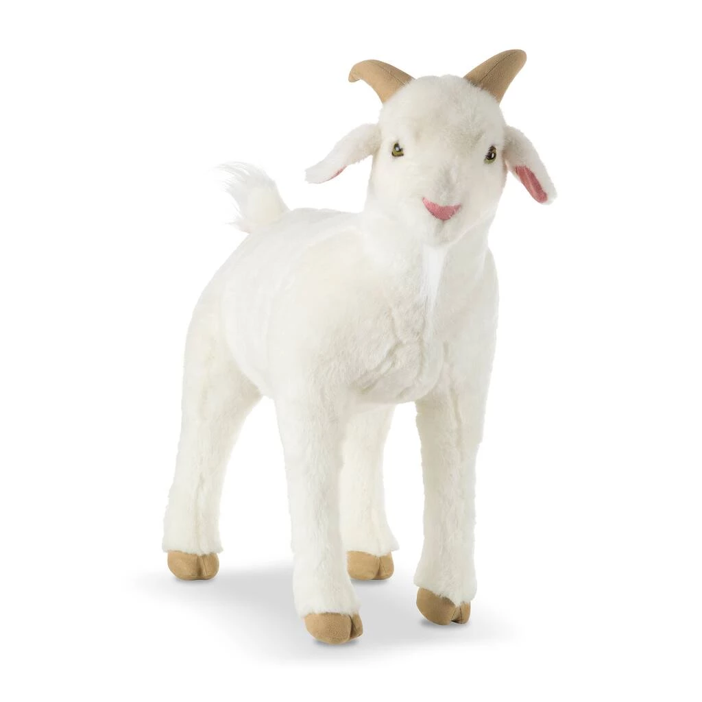 No kid-ding around, this adorable goat will wander into any kid’s heart! Its soft and pet-able white fur, scruffy beard, and adorable expression inspire goat-loads of cuddles. Detailed features include realistic eyes, droopy ears, pointy horns, and soft, split hooves.