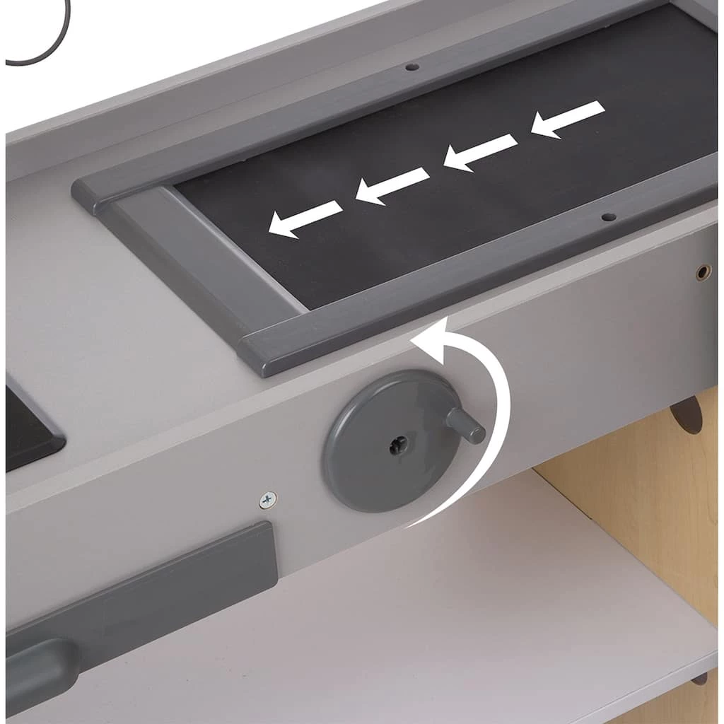 - Hand-cranked conveyor belt
