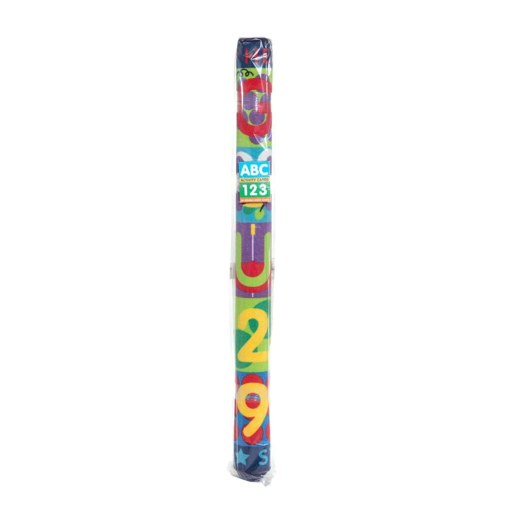 Kids will have jumbo amounts of fun exploring and learning the alphabet, numbers, colors, and shapes on the Jumbo ABC-123 Rug! Thereβs more than 30 square feet of space on the durable and soft rug to play matching games with the set of 36 double-sided game cards. There are whimsical pictures with each letter of the alphabet and numbers 1 through 9, and the border includes 12 shapes and shape names. Made from durable material that is incredibly soft to the touch for extra comfortable play, this multi-activity rug features a skid-proof backing and reinforced border binding.