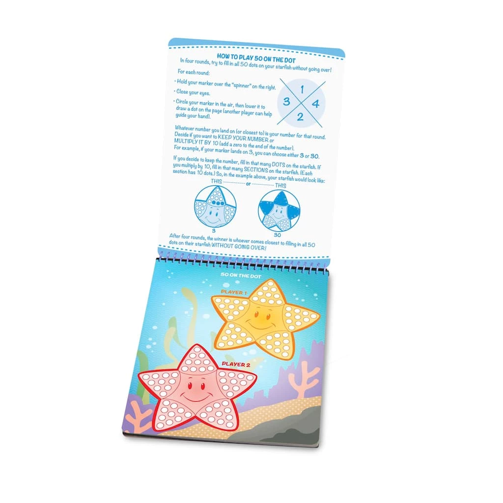 Take fun on the go with this “re-markable” take-anywhere book of dry-erase marker games! Choose from 17 different word, number and picture games for one or two players, including classics like hangman and I-spy, as well as games that are sure to become new favorite challenges. Two included dry-erase markers with built-in eraser caps store conveniently in the cover of the spiral-bound book, making it a perfect travel activity for kids six and older. Itβs easy to write on, erase, then play again!