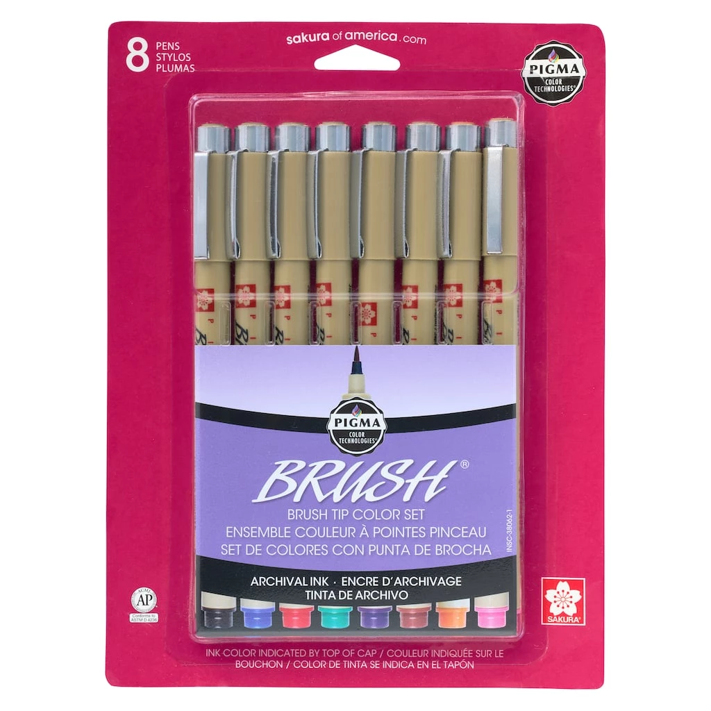Create a fun comic strip with these Sakuraยฎ Pigmaยฎ Brush Pens. Each of these pens has a flexible brush tip, which lets you write like a pen and paint like a brush. Perfect for archival-quality job, these pens use fade-resistant Pigma ink, which resists smearing or feathering once dry.